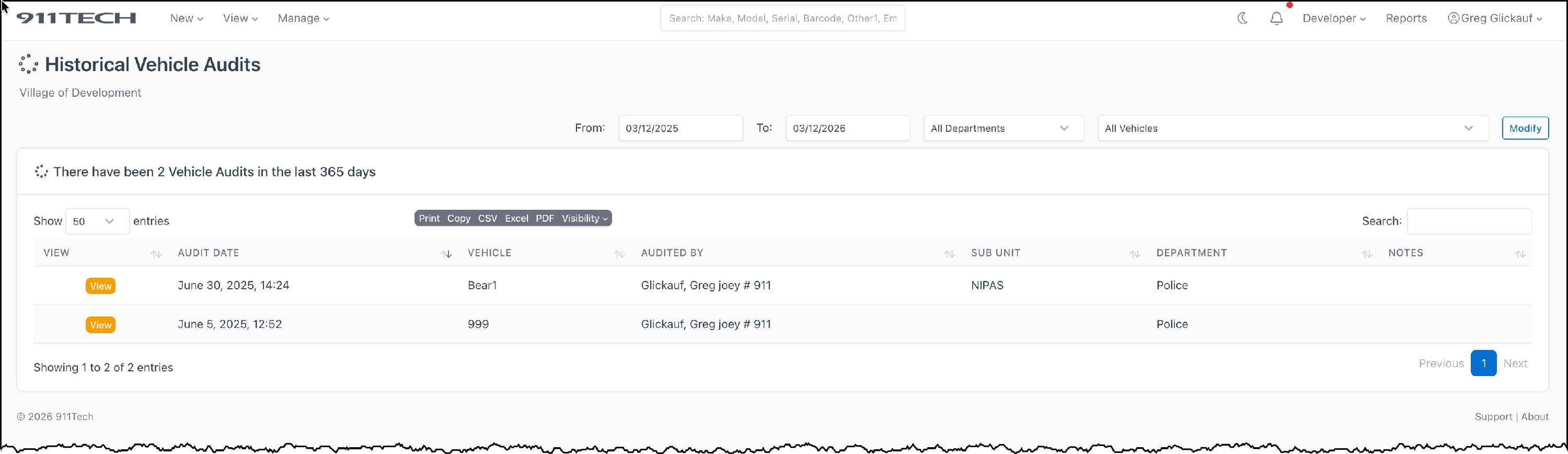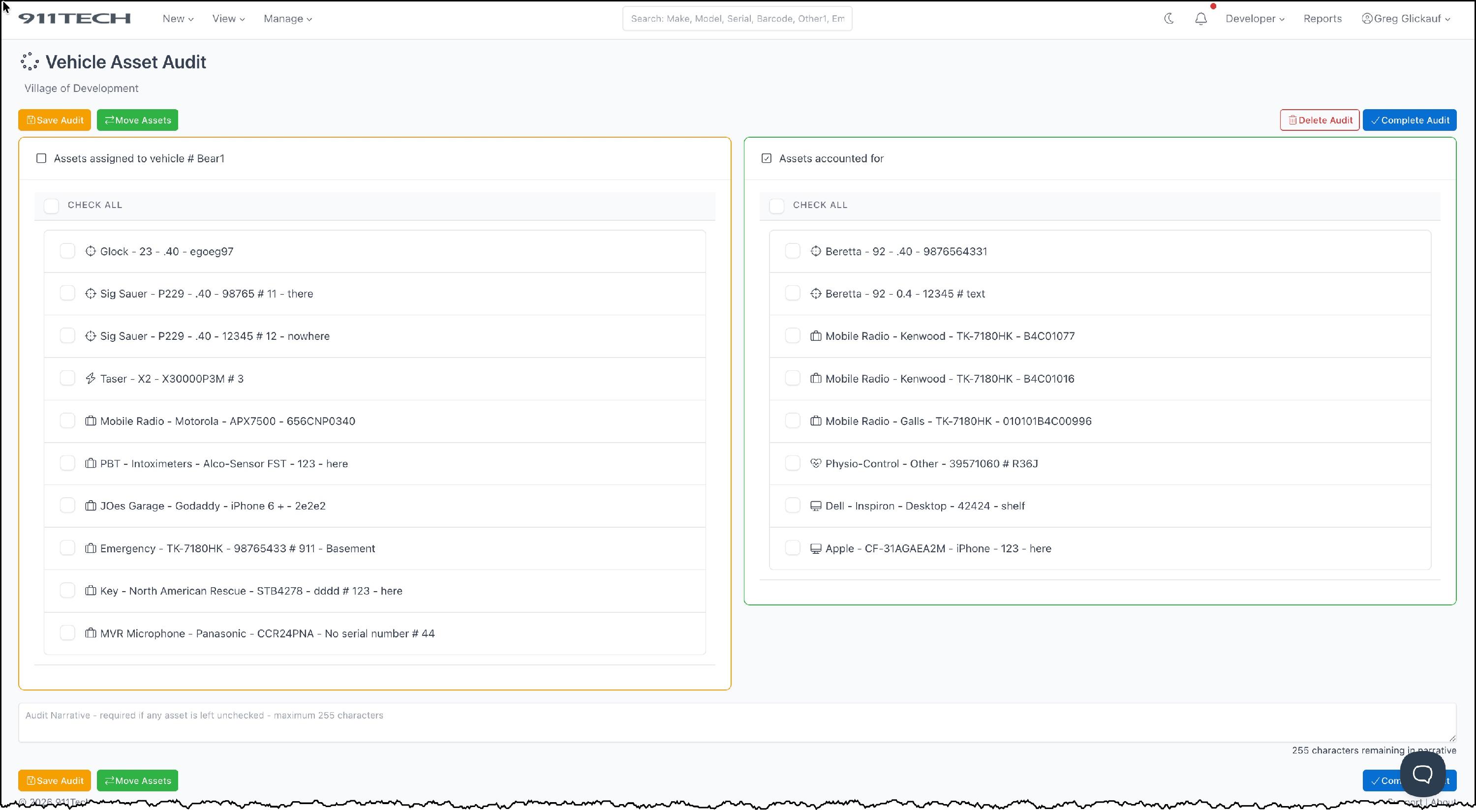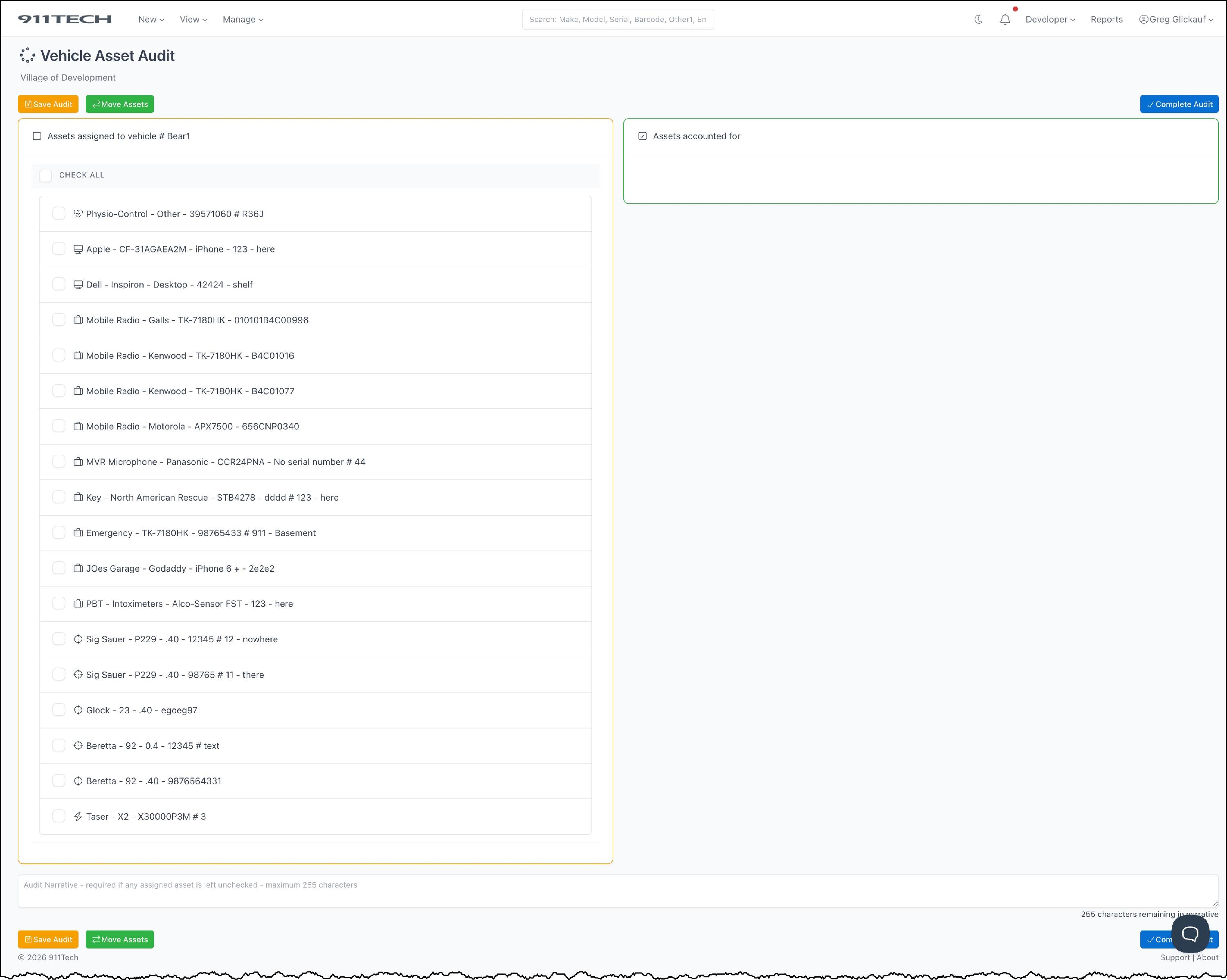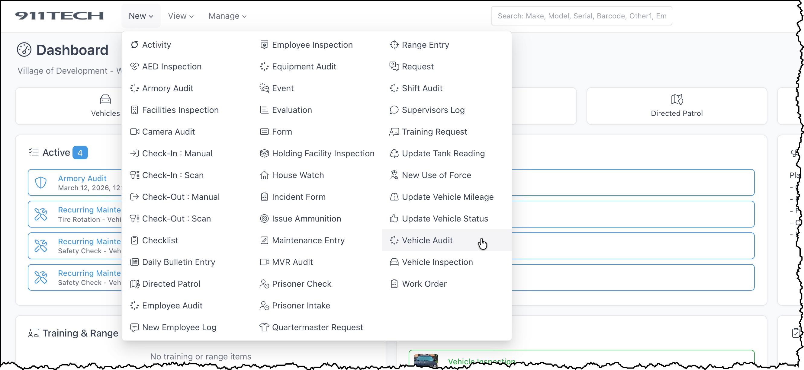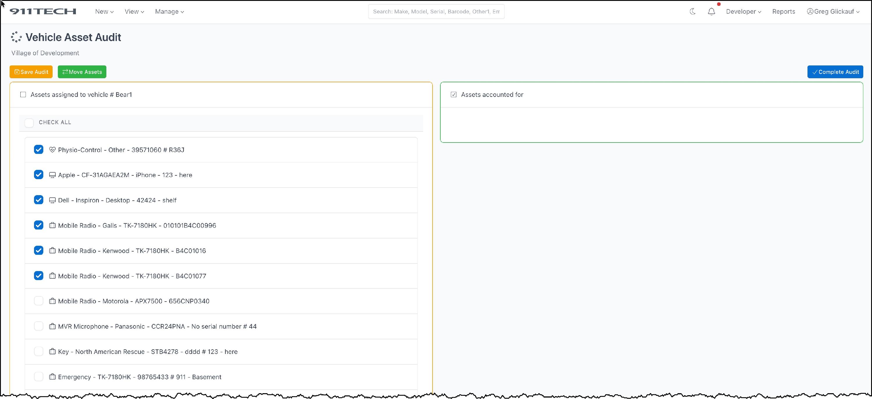 Vehicle Audits allow agency's to quickly audit assets assigned to a specific vehicles and maintain a record of historical audits.