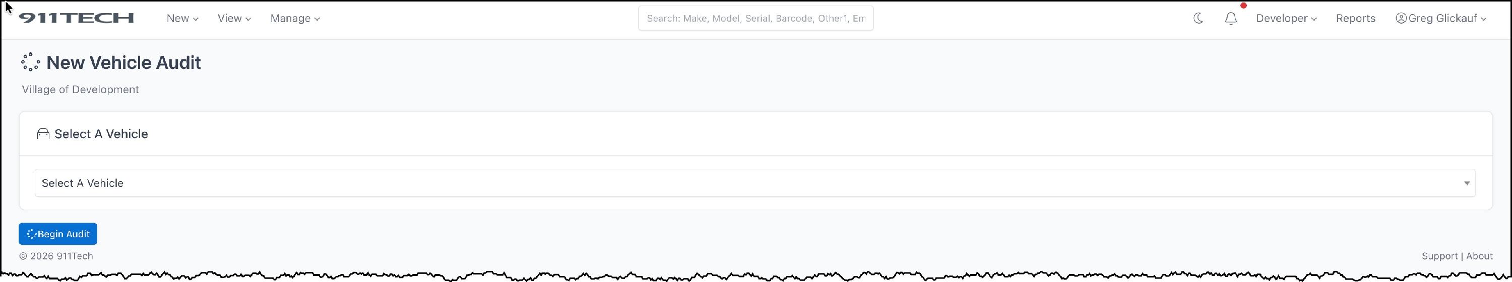 Select the vehicle you wish to audit and click Begin Audit.