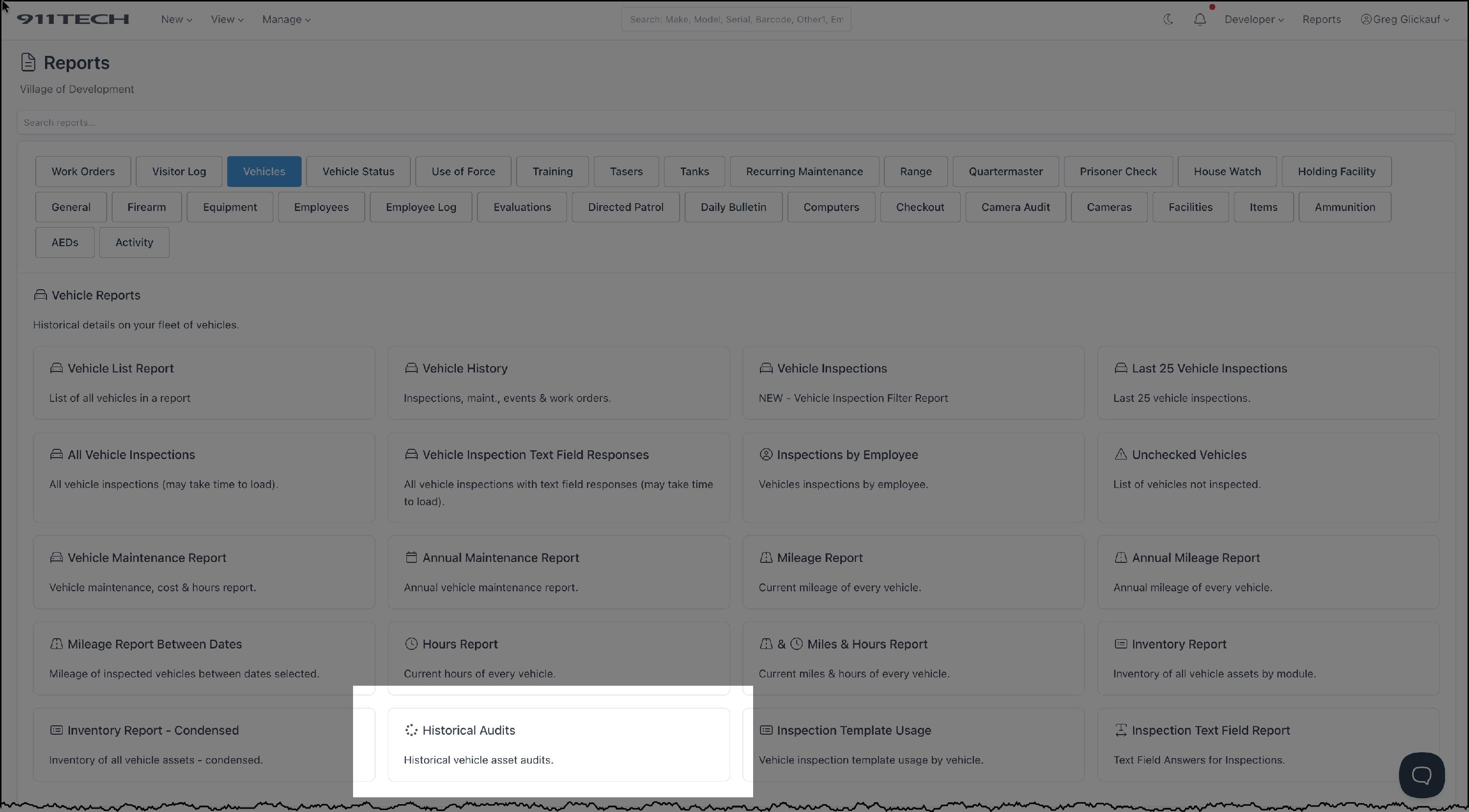 There is one report for historical Vehicle Audits titled: Historical Audits.