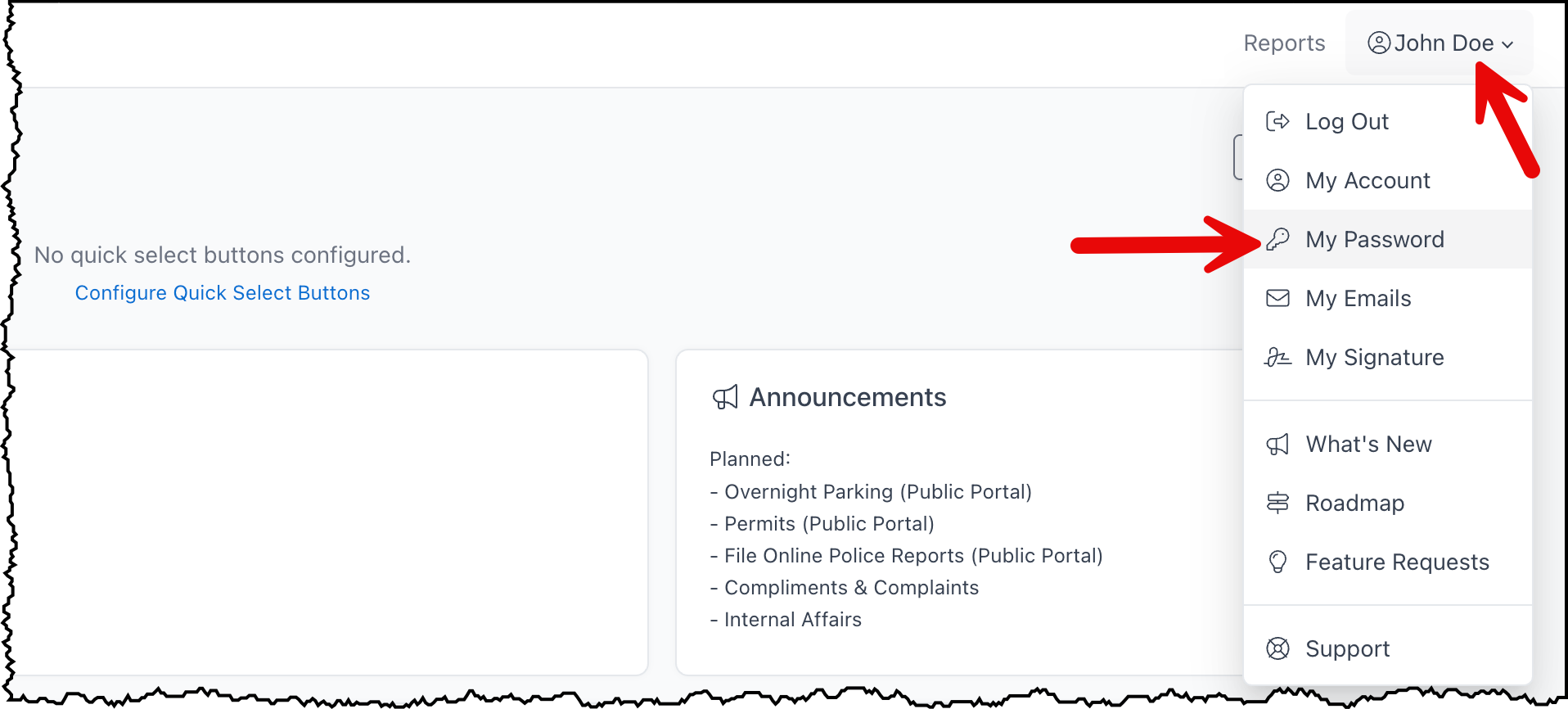 To change your password click your name => My Password
