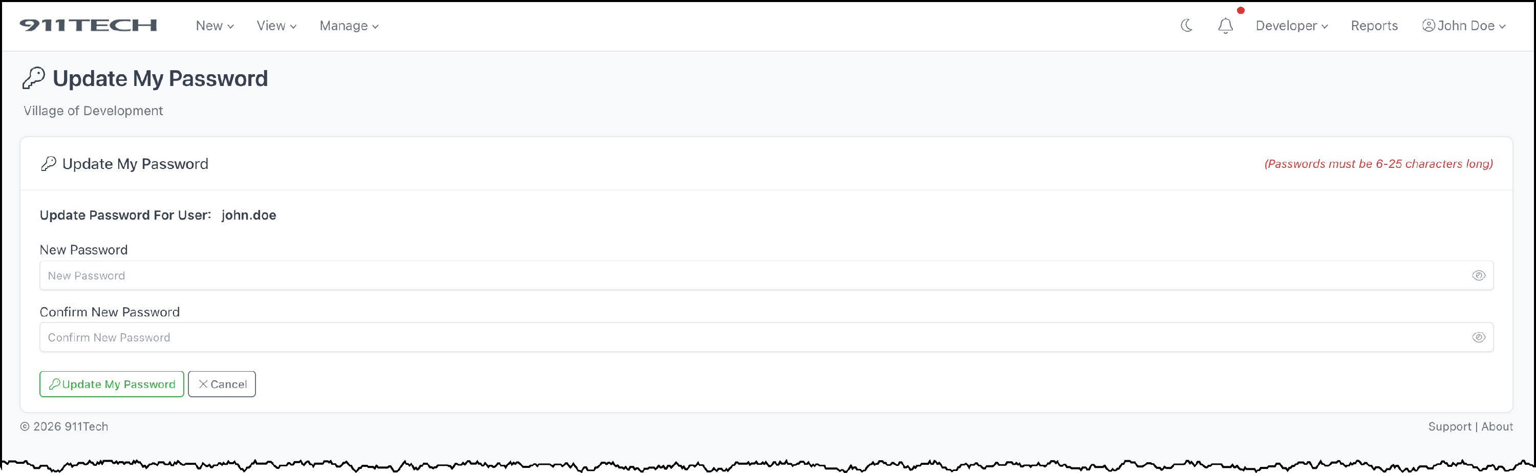 Enter your new password. Confirm the new password. Click Update My Password.