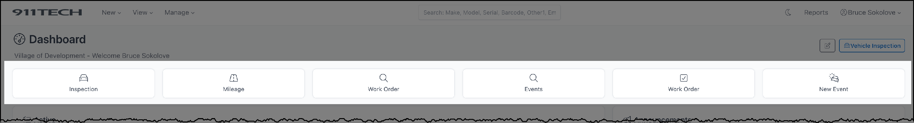 Each user can have up to six Quick Select buttons on the dashboard. These buttons are designed to offer users quick access to their most commonly uses modules of our software.
