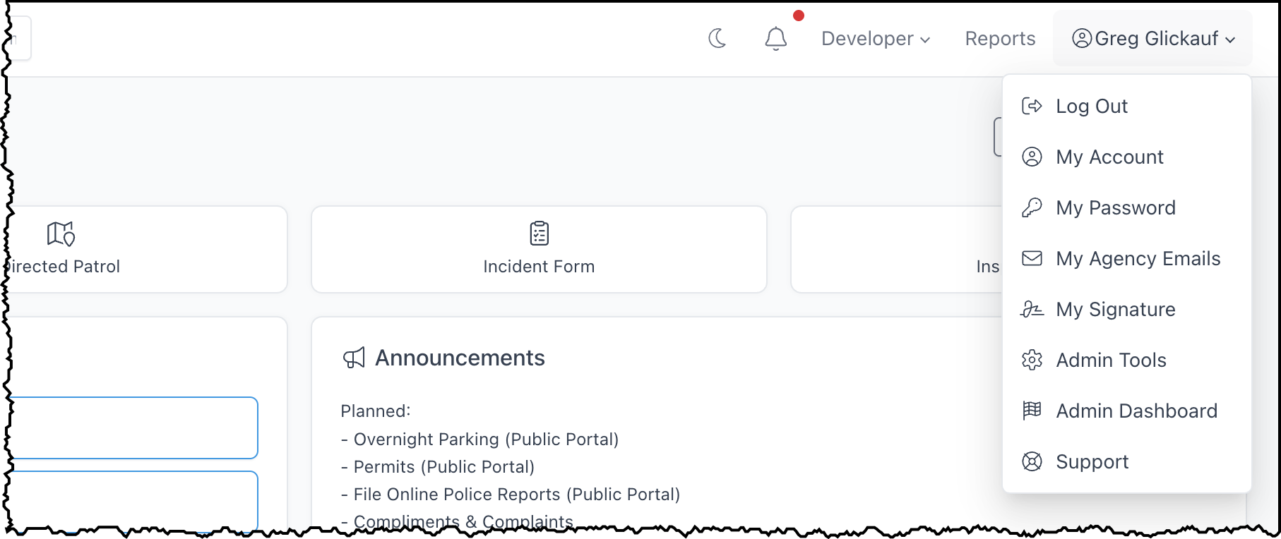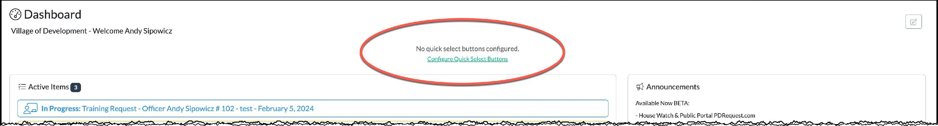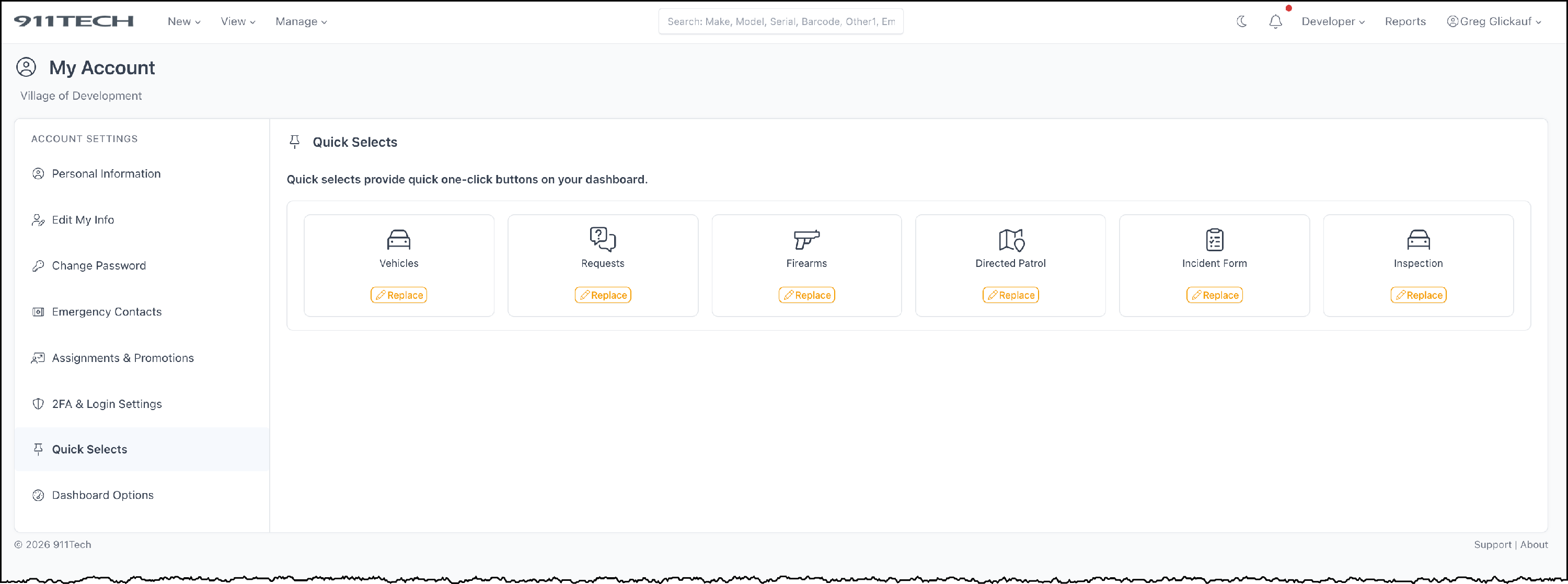 If you do not have any quick select buttons enabled, (if your agency allows) click on the notice at the top center of the dashboard or go to the my account page by clicking Your Name => My Account.
