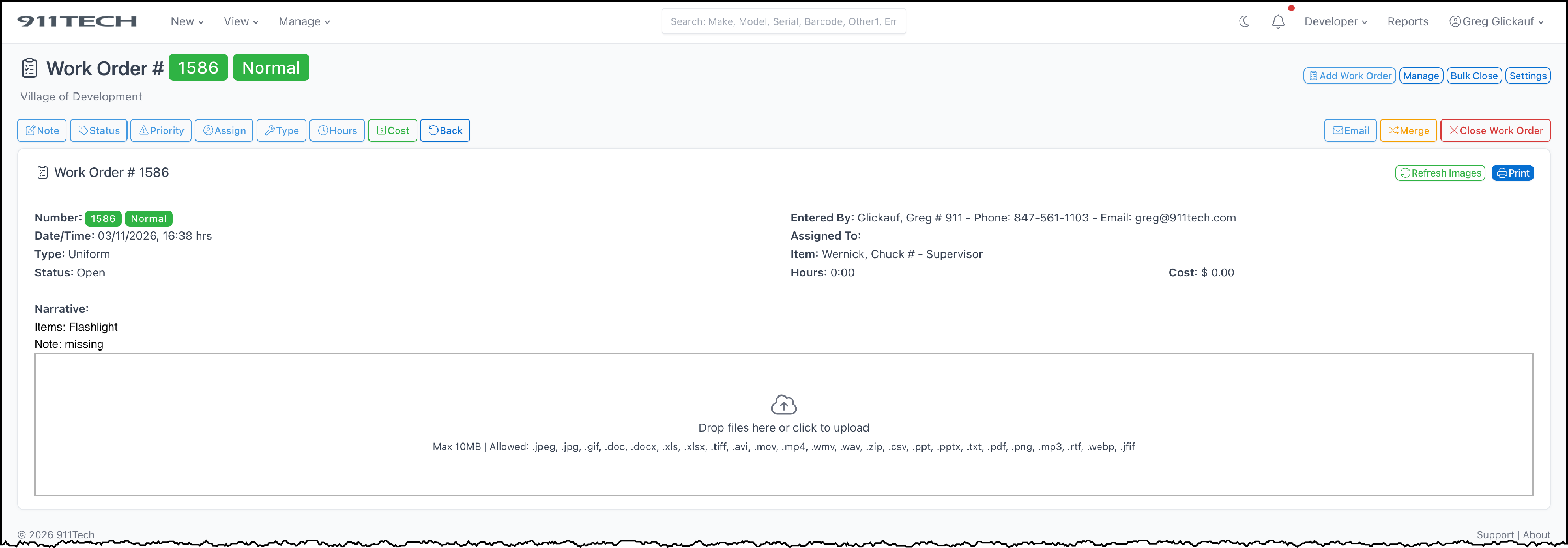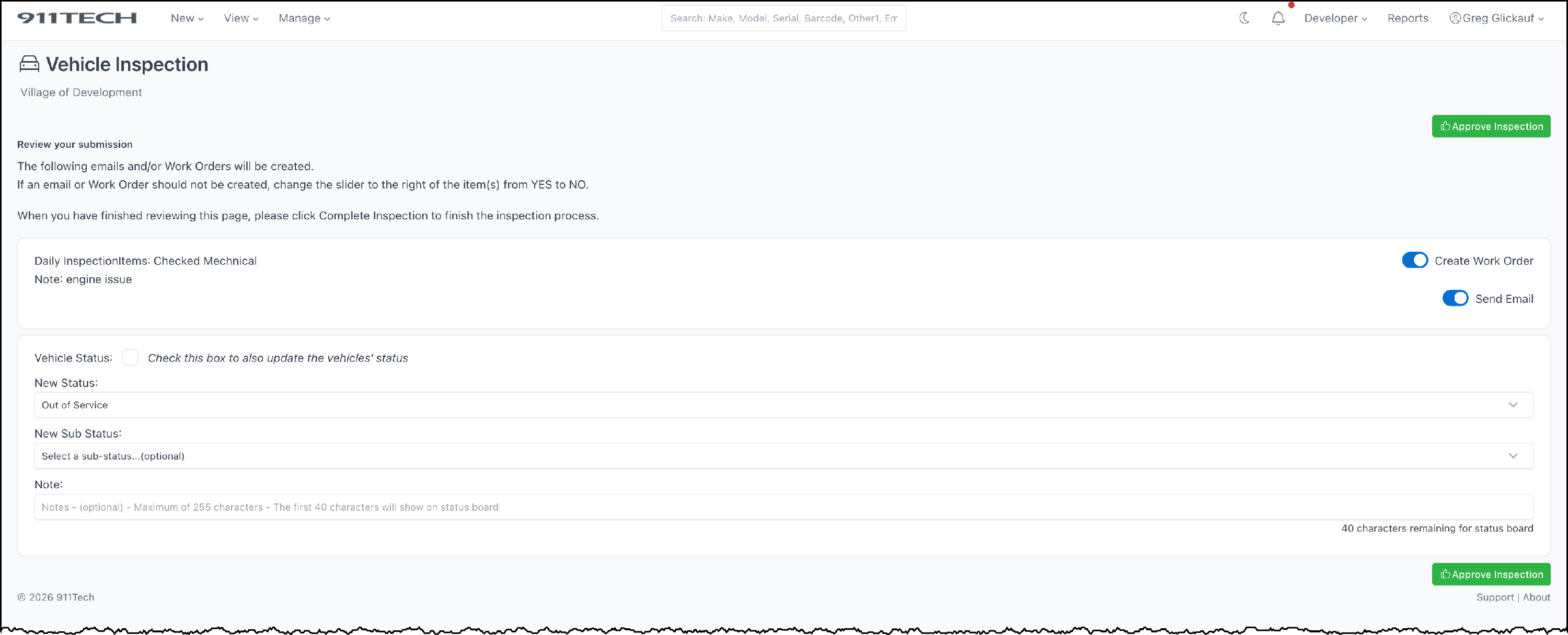 The system will create work order(s) and send out email(s) based upon this inspection.