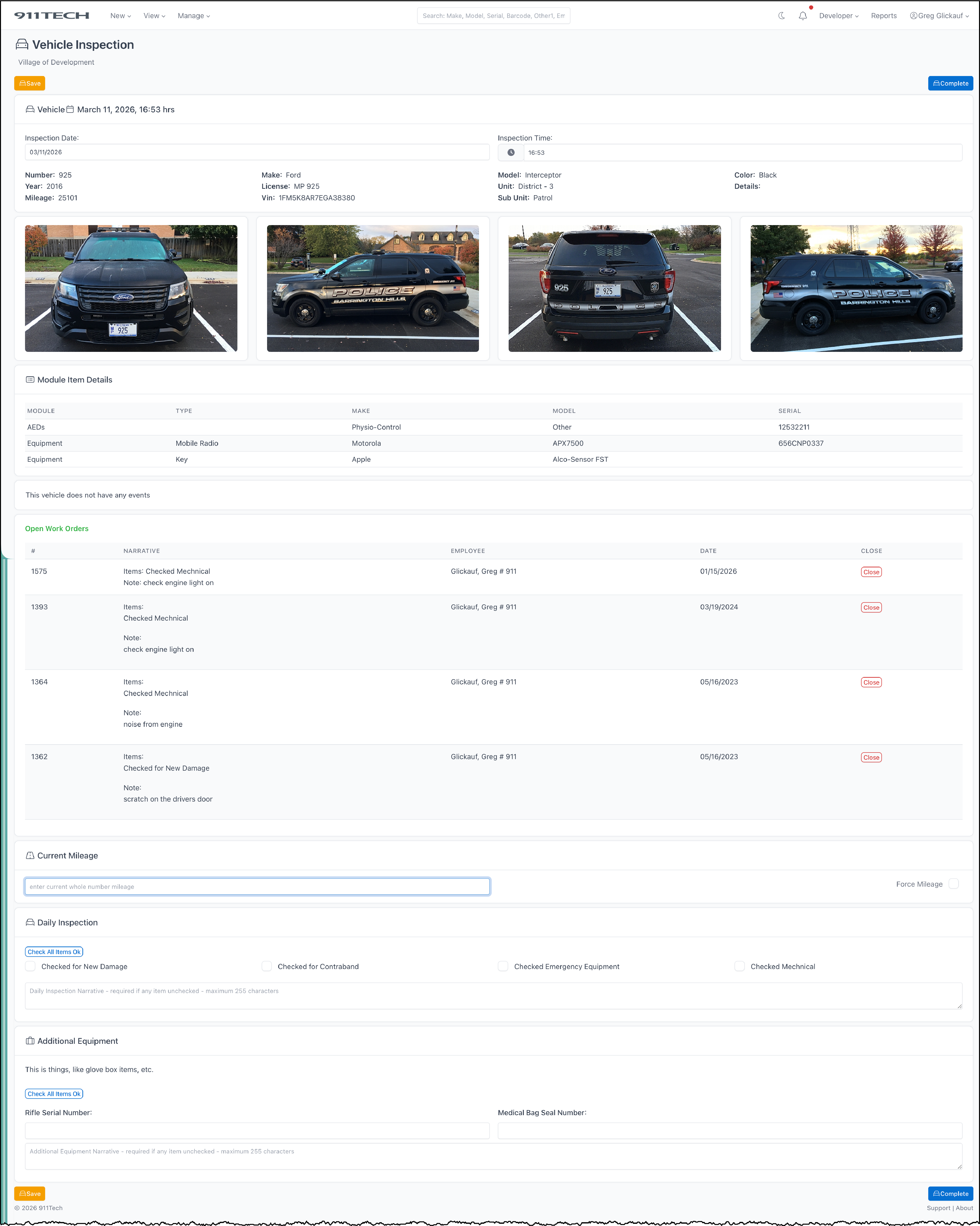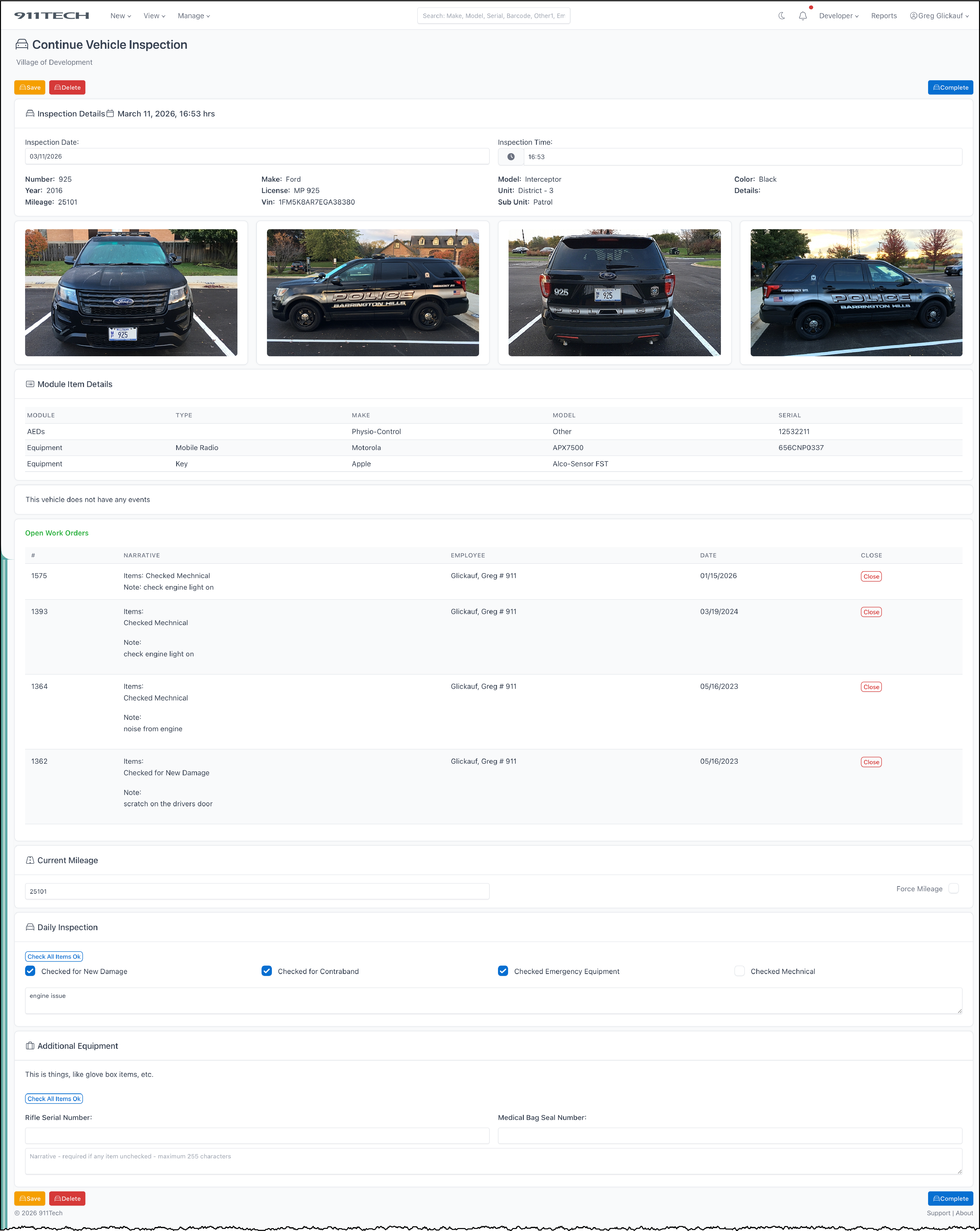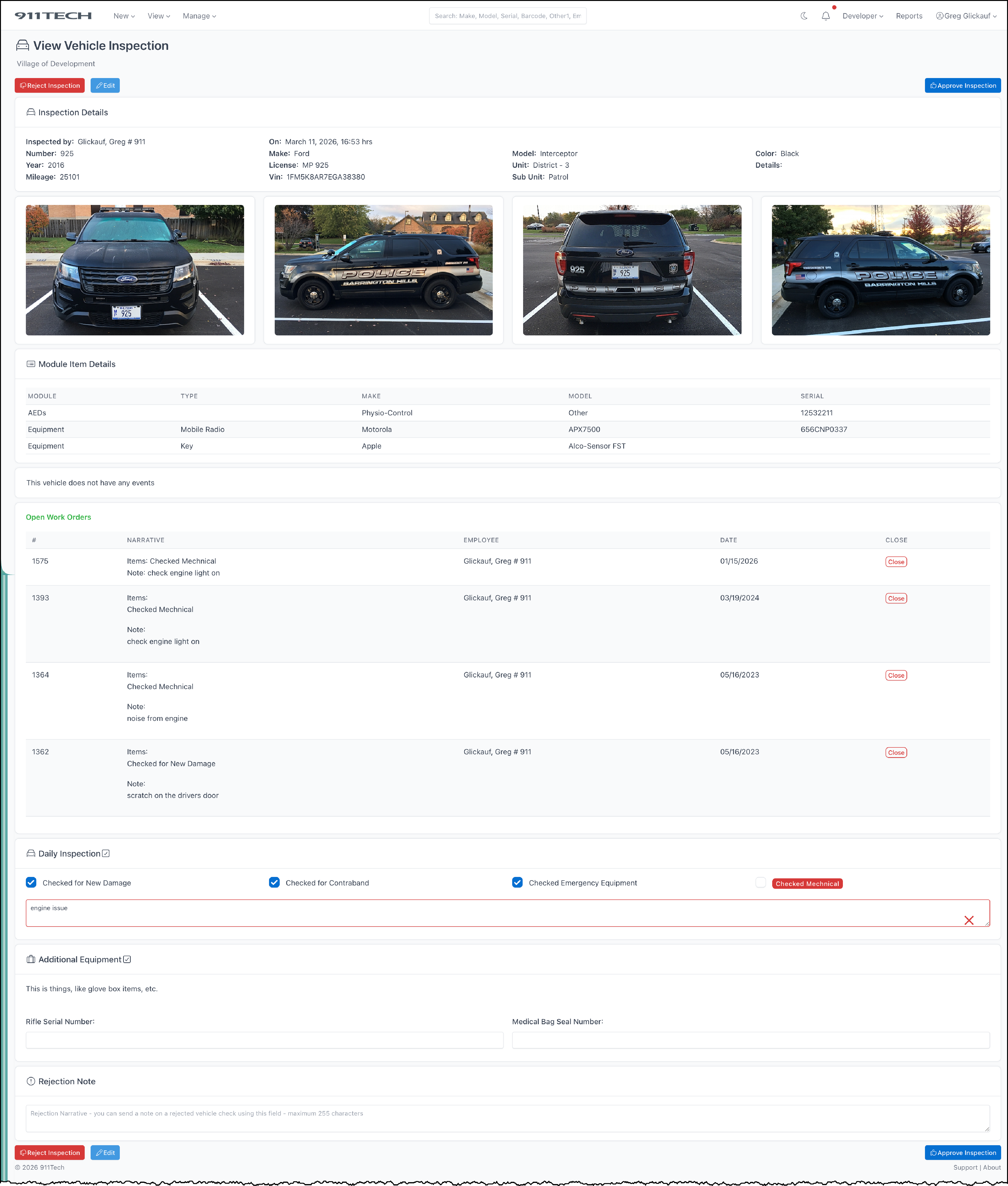 The Vehicle Inspection Module allows an agency to document the physical inspection of their Vehicles and automatically report any deficiencies.