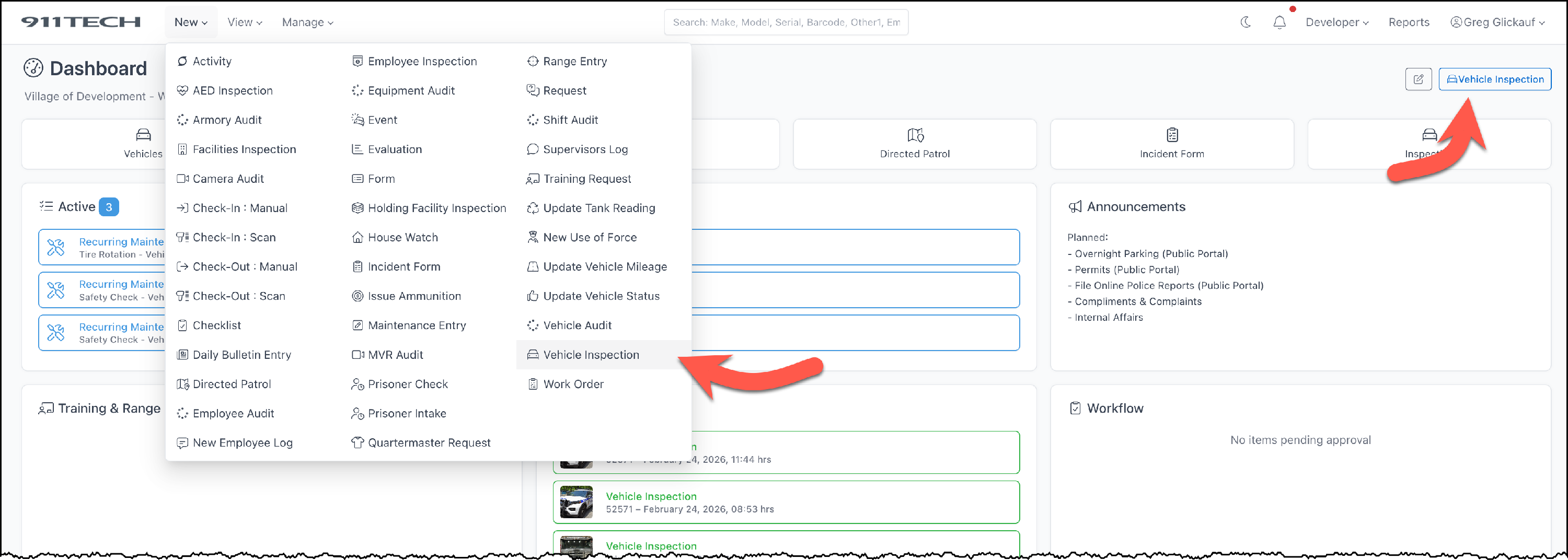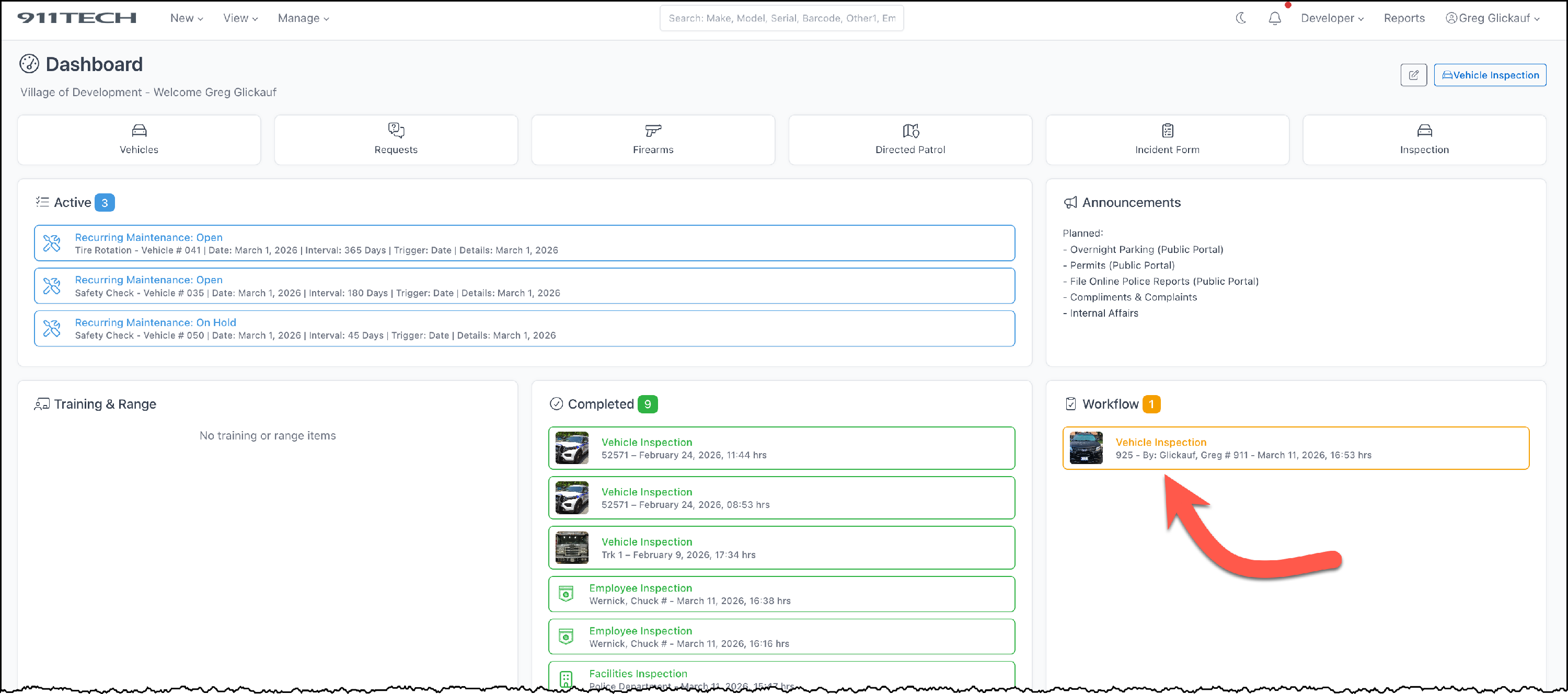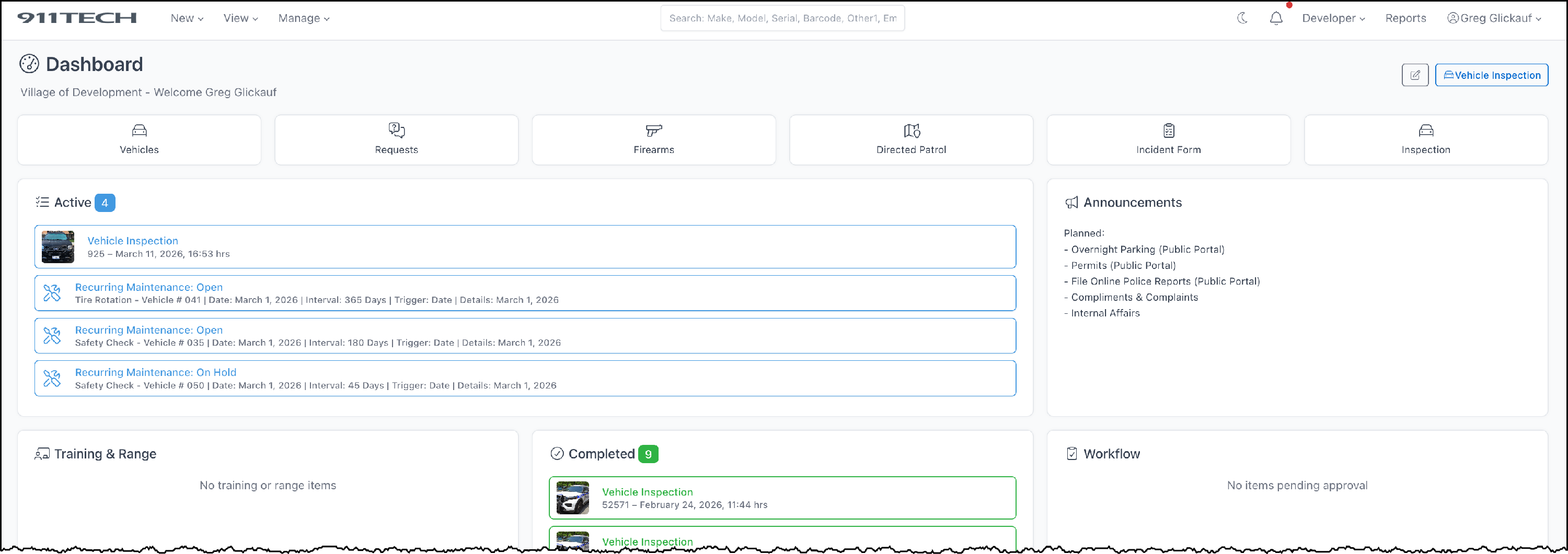 The Vehicle Inspection Module allows an agency to document the physical inspection of their Vehicles and automatically report any deficiencies.