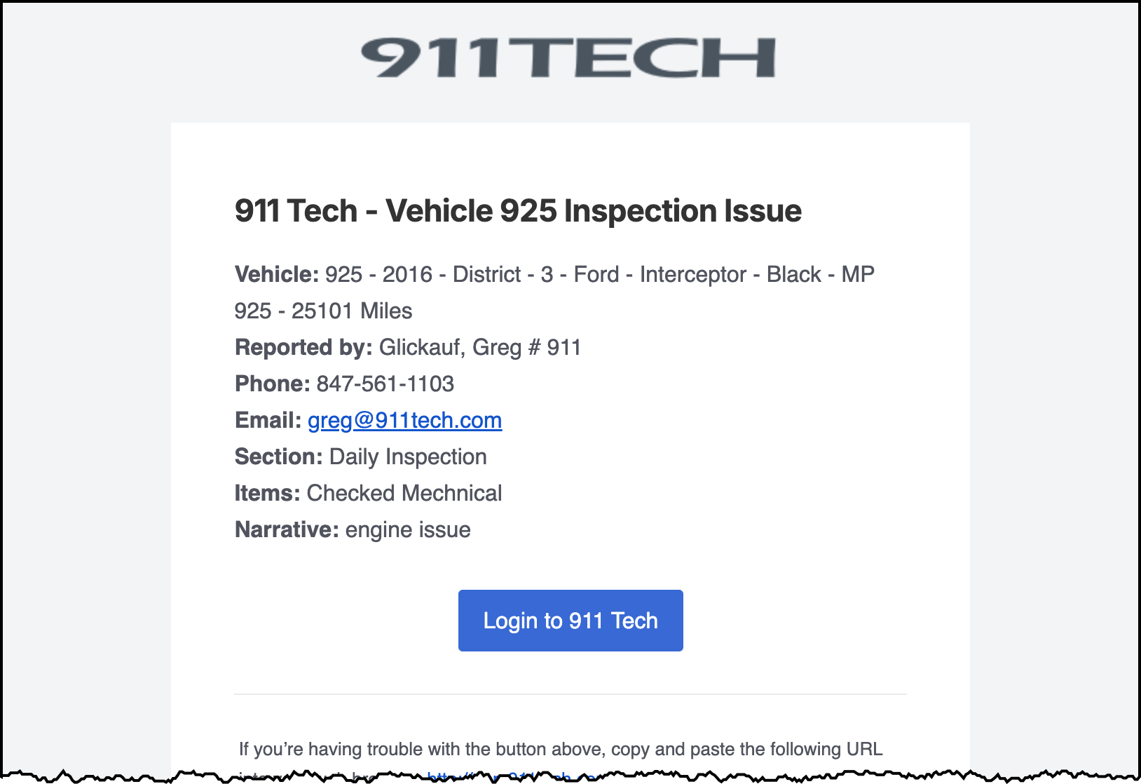 Based upon this inspection the following email would have been sent out to the proper personnel.