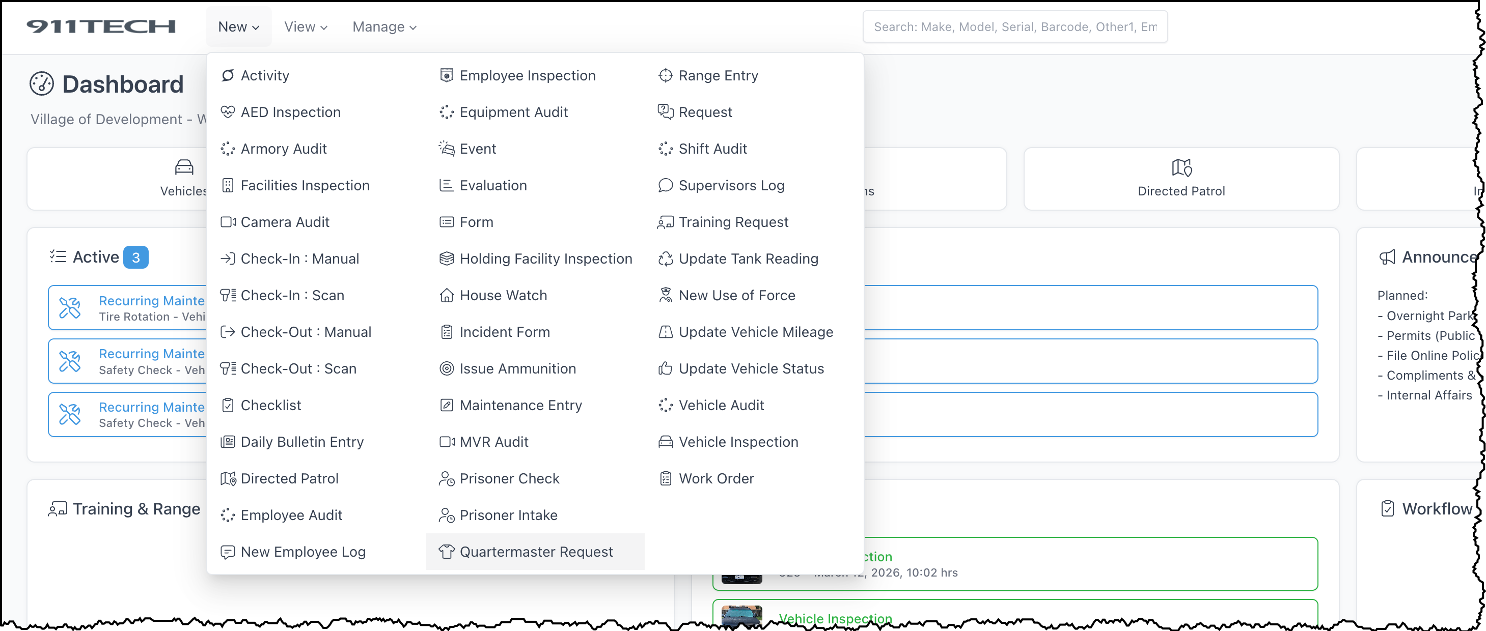 To place a new quartermaster request navigate to New => Quartermaster Request.
