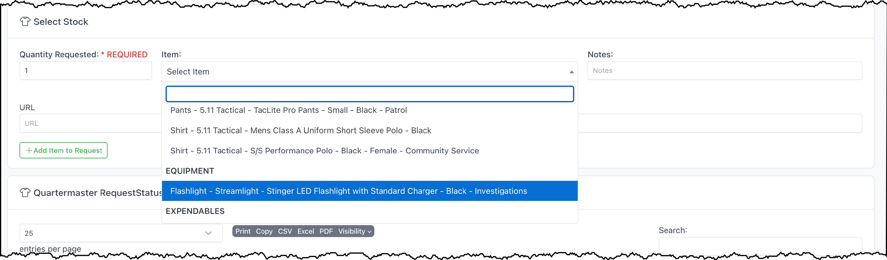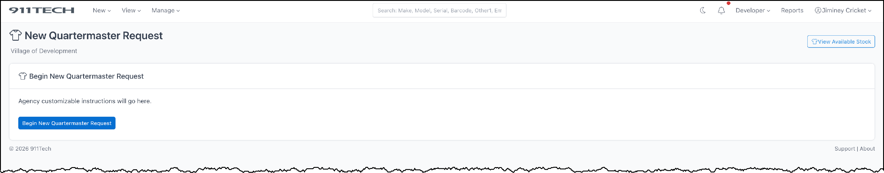 If your agency uses the older step-by-step Quartermaster Request screen, please see the article Using the alternative step-by-step select method at the bottom of this page.