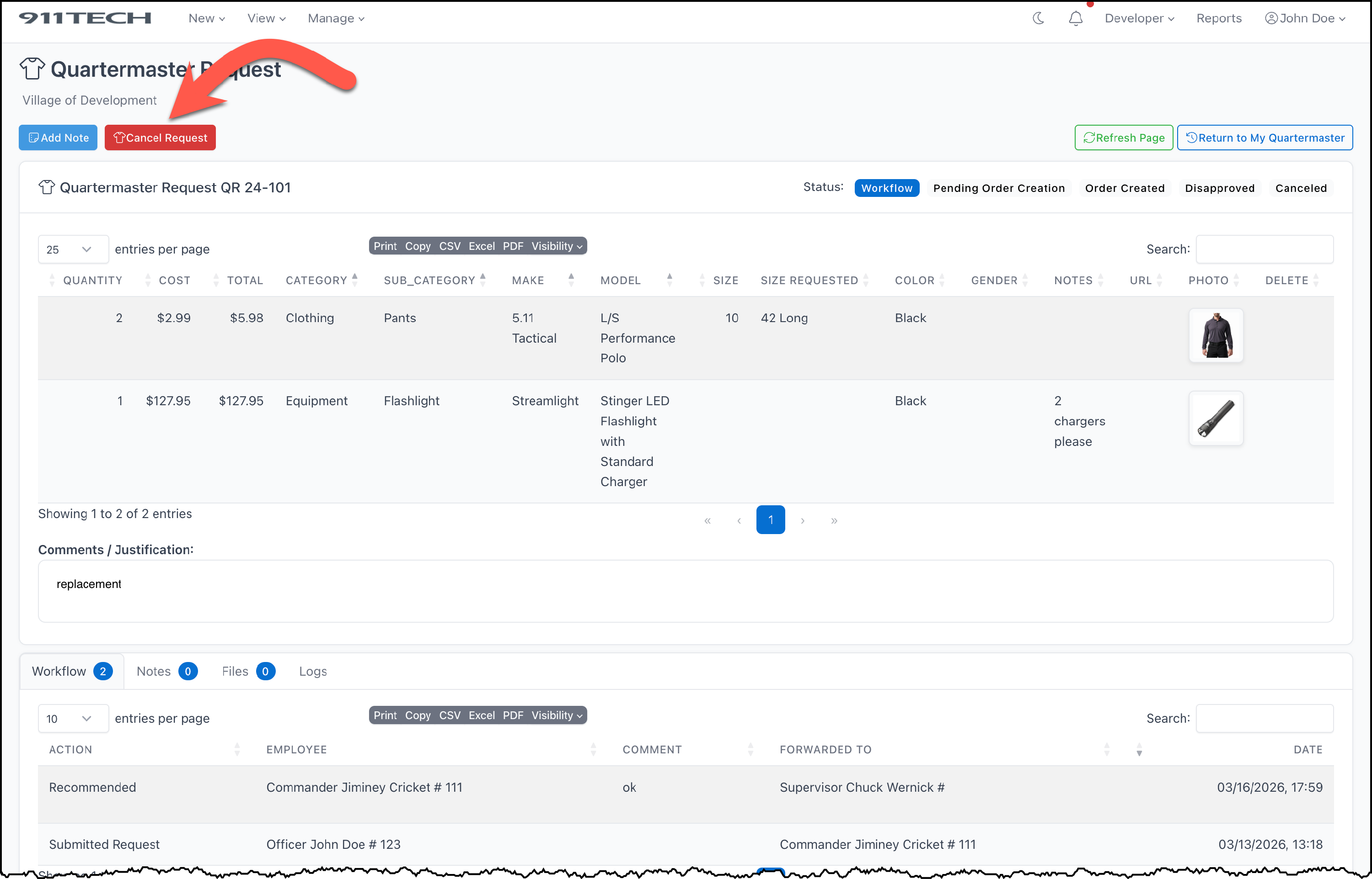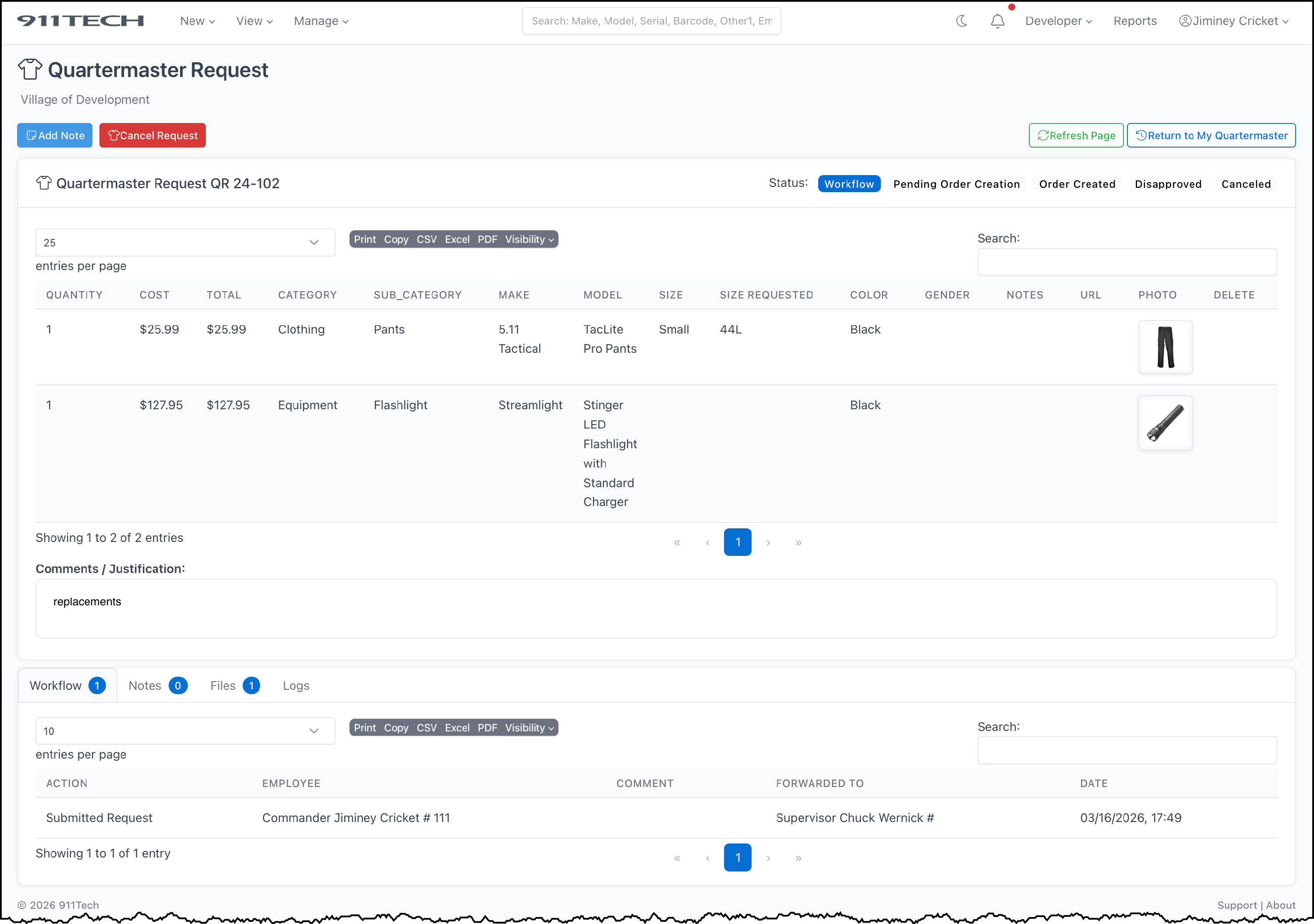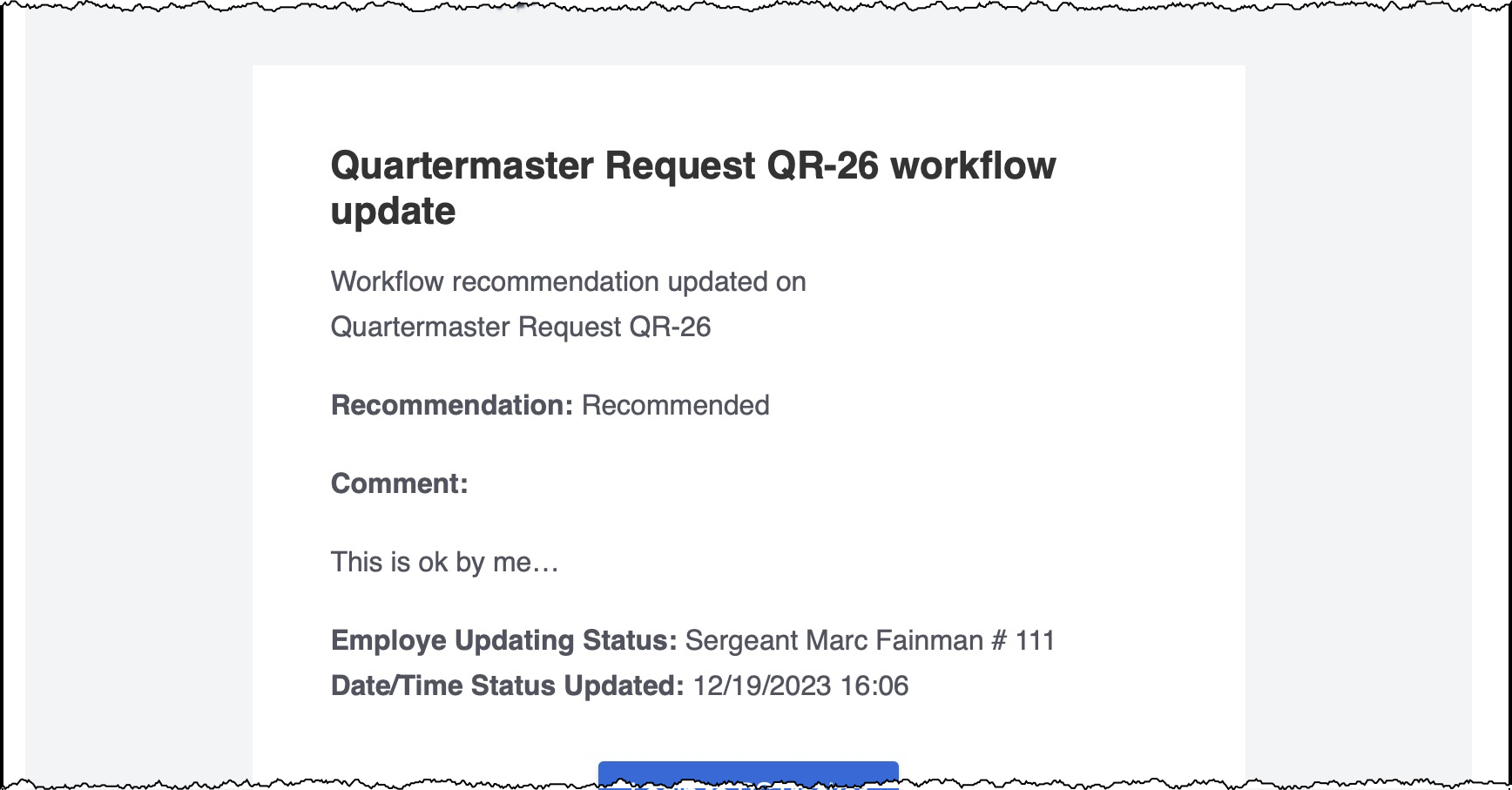 Quartermaster Request go through a workflow/approval process. Your agency policy will dictate to whom your request should be forwarded.
