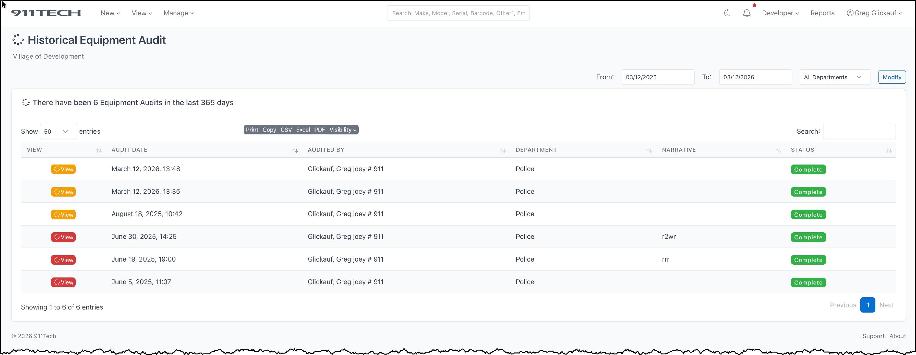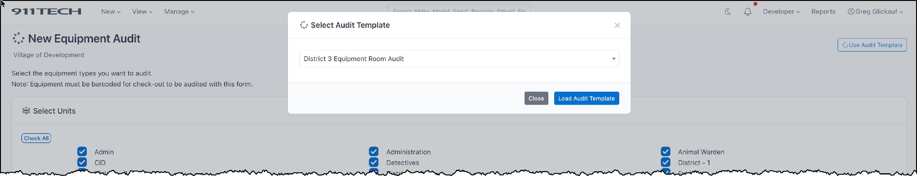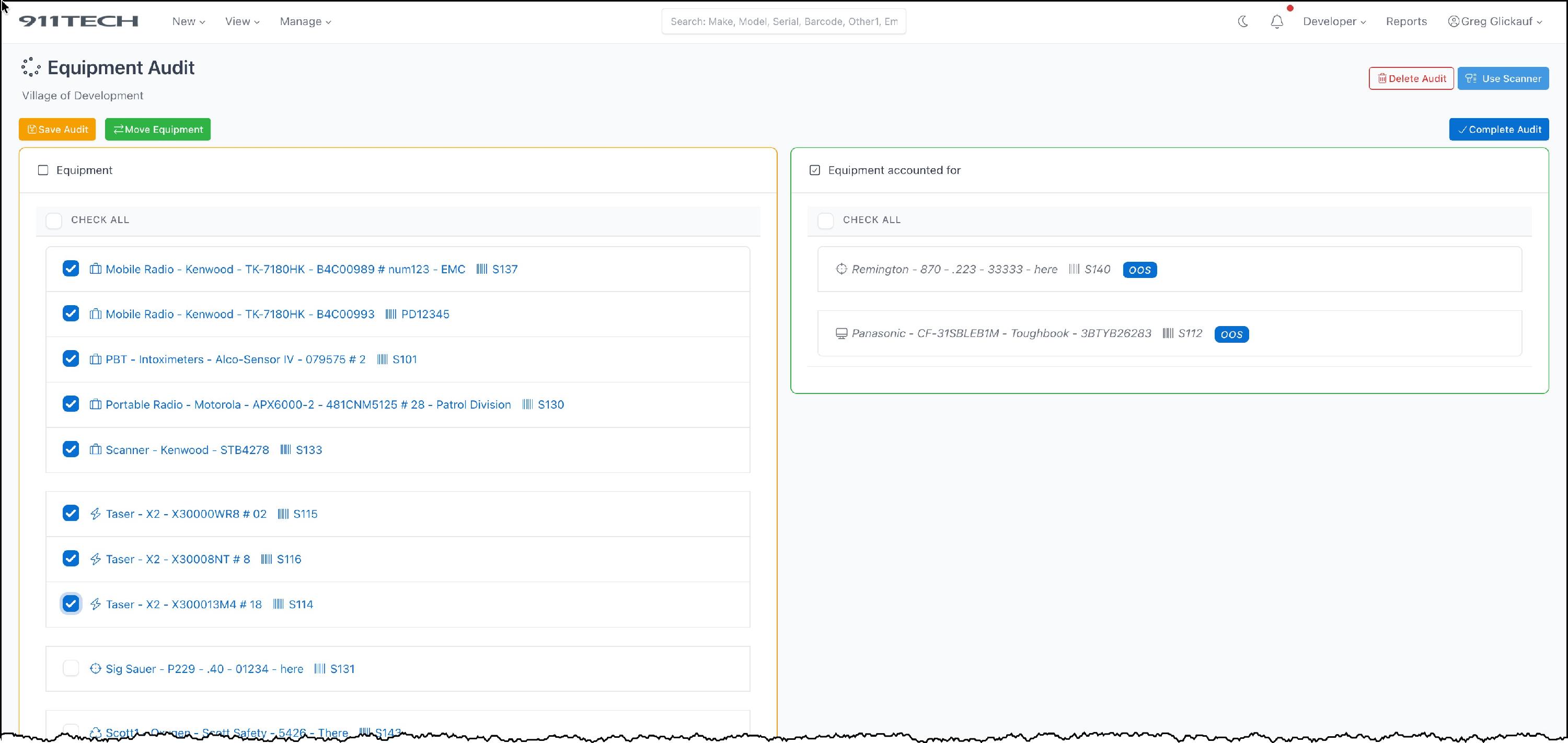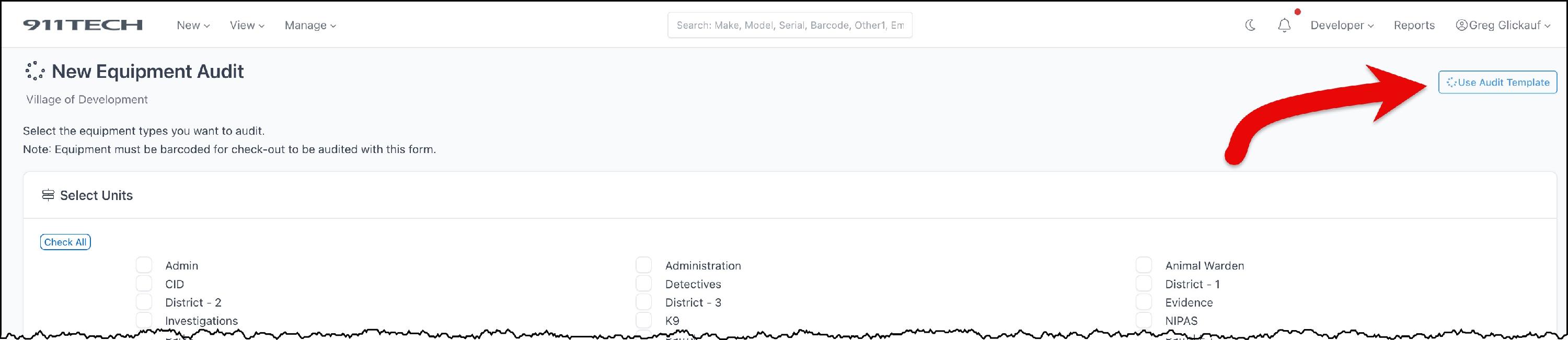 Equipment Audits allow agency's to quickly audit the agency's equipment and maintain a record of historical audits.