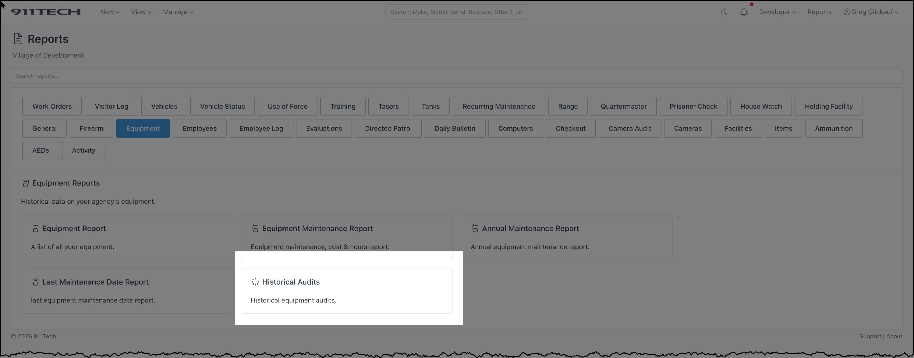 There is one report for historical Equipment Audits titled: Historical Audits.