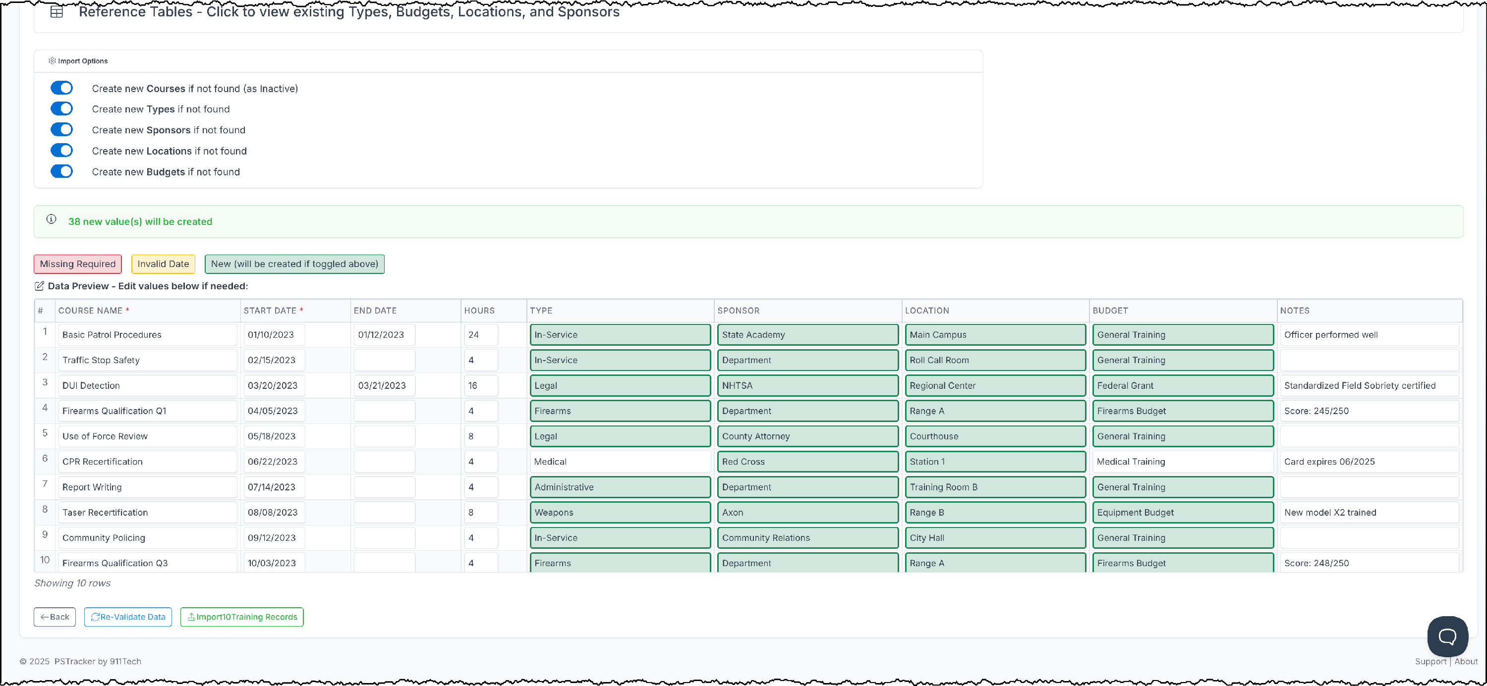 Can I import custom fields? Yes, if your agency has custom training fields enabled, they will appear as mapping options.