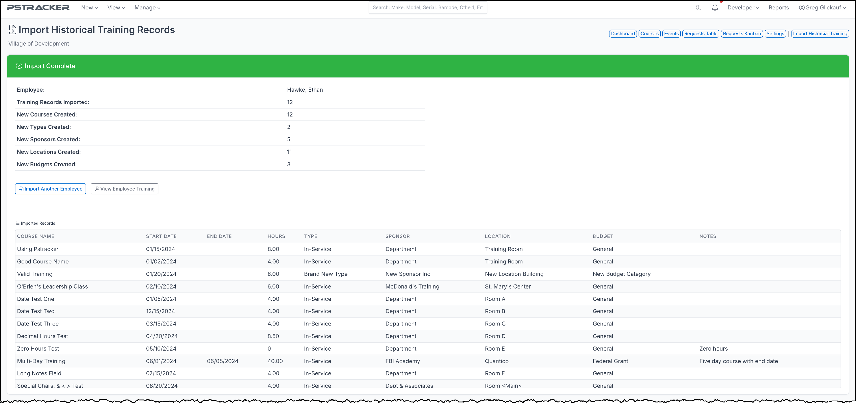 What happens if I import the same training twice? Duplicate records will be created. Review the employee's training history before importing to avoid duplicates.