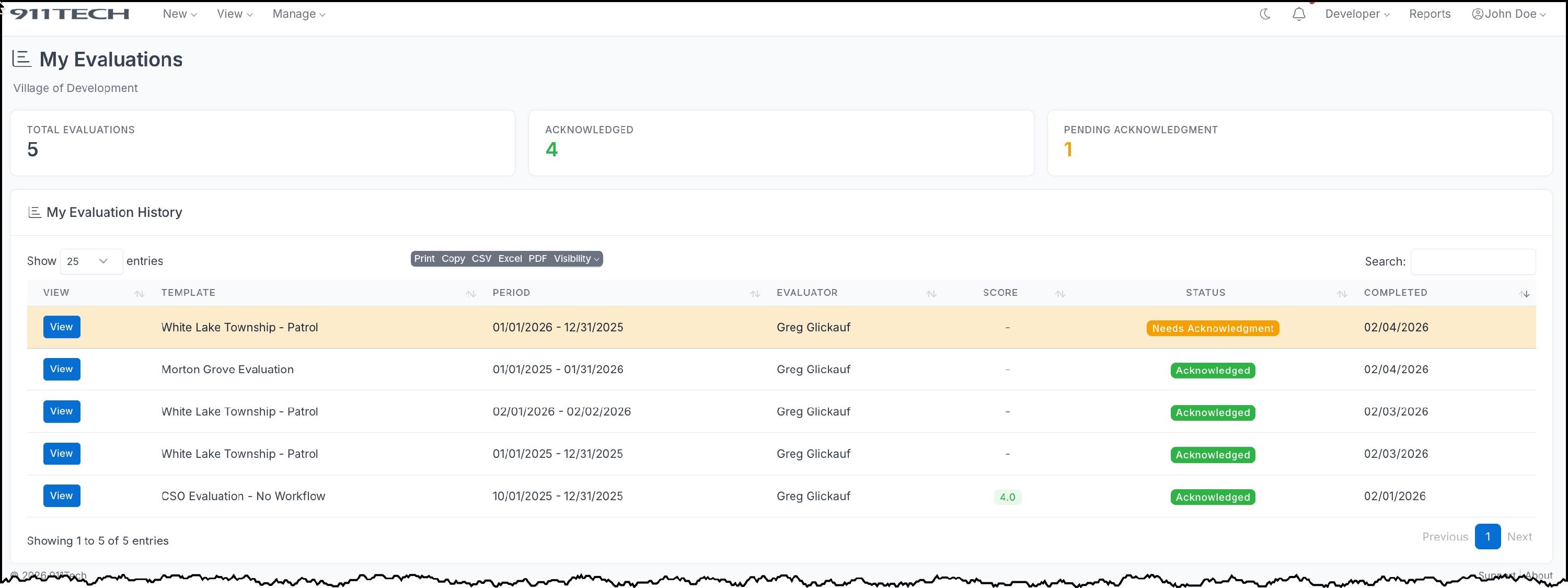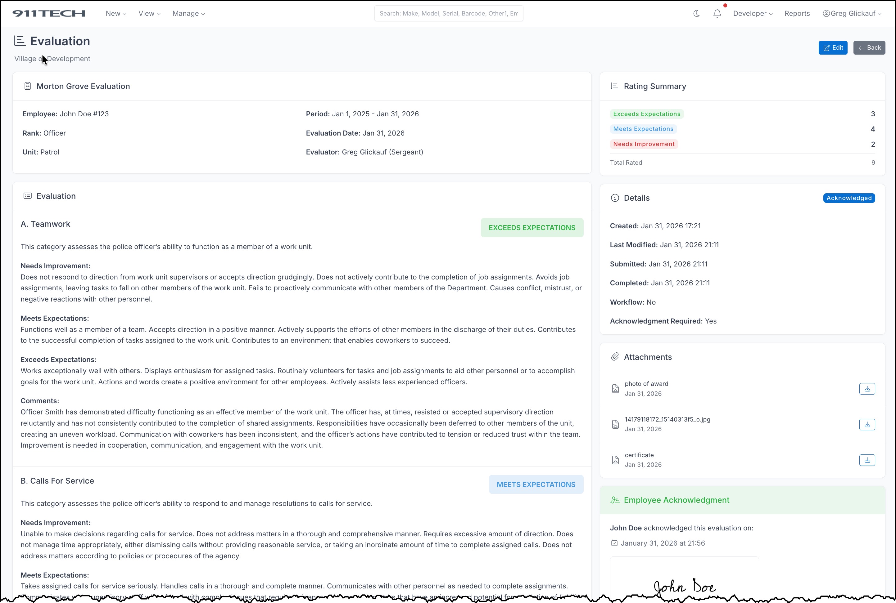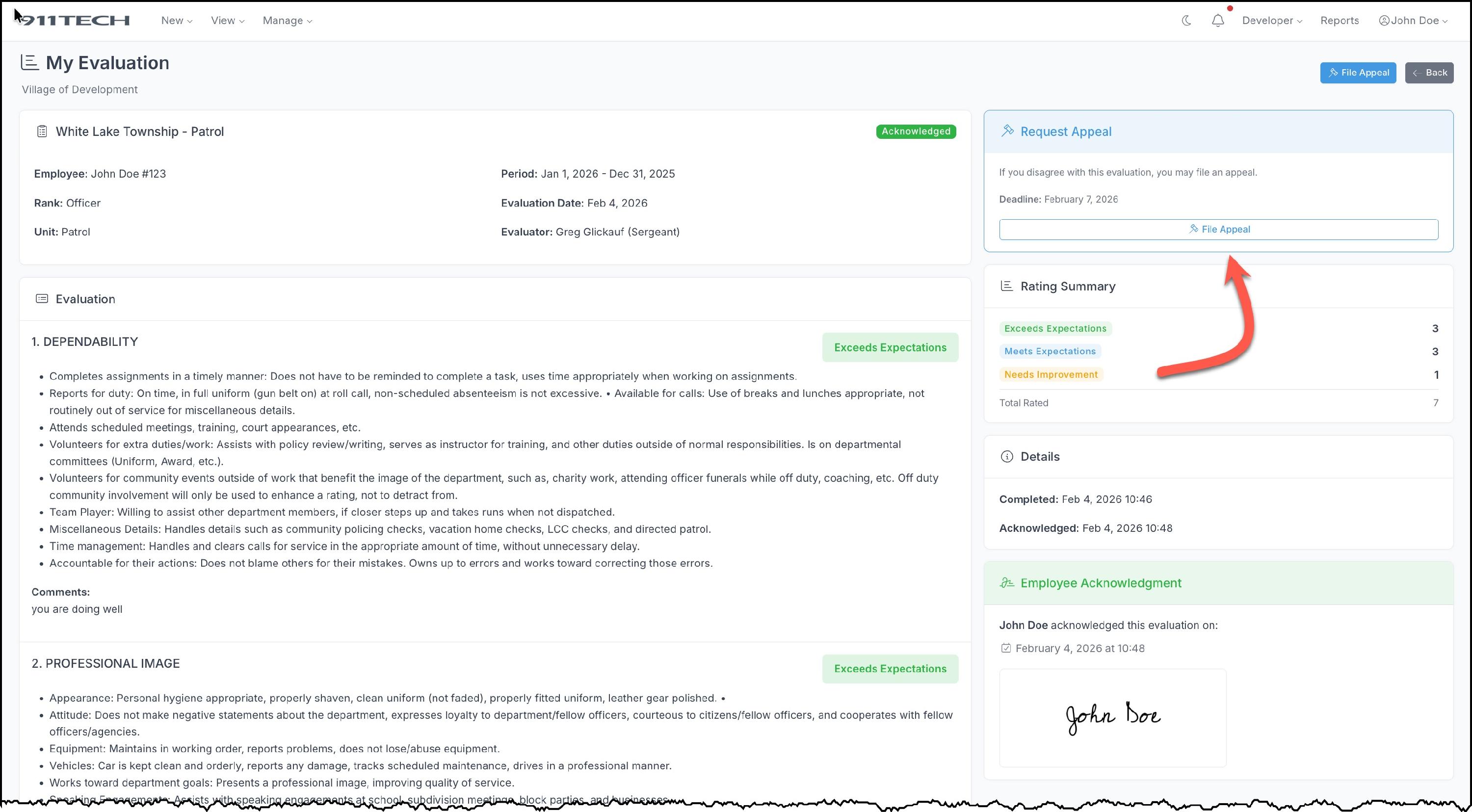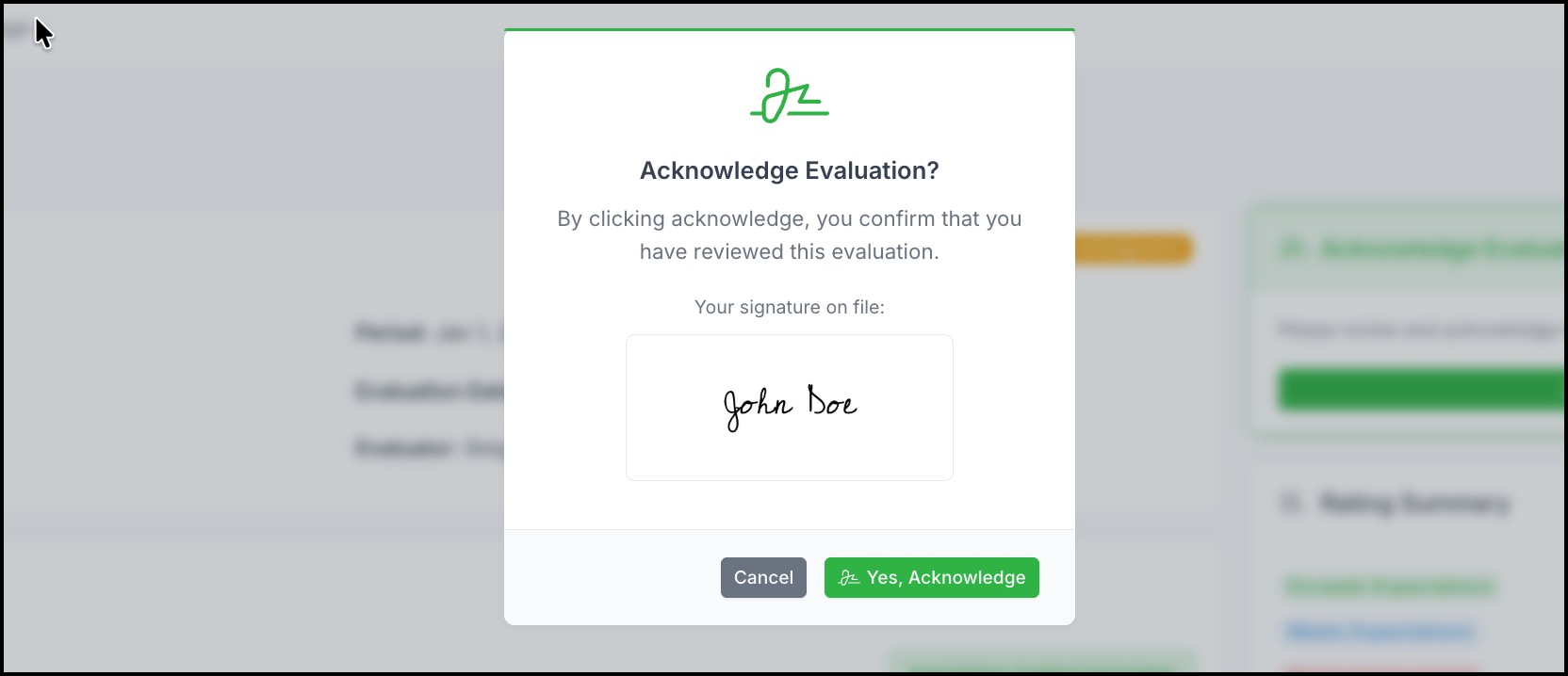 If you have a signature on file, click Acknowledge Evaluation